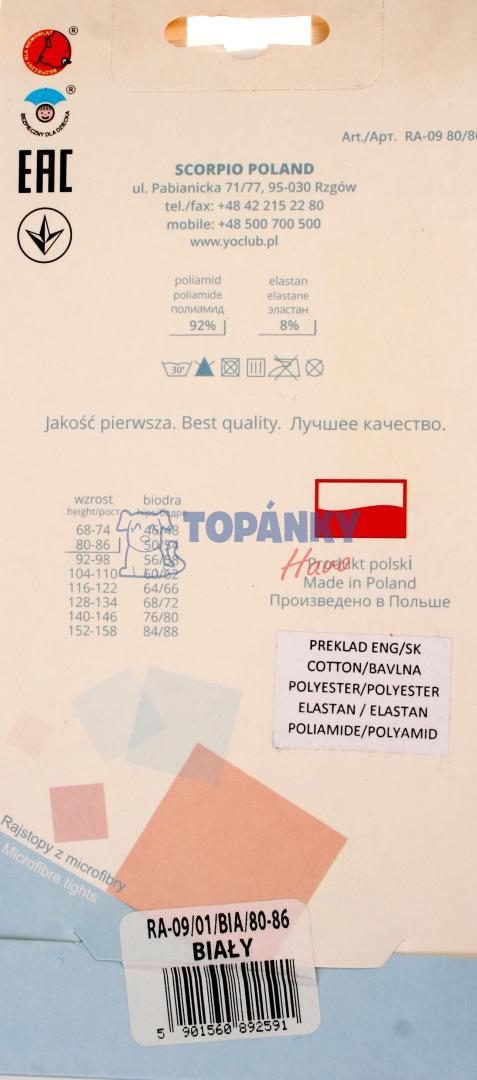 Pančuchy YO- 40DEN - 80/86 biele (RA-09)