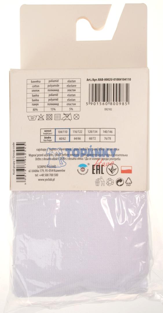 Pančuchy YO- RAB-0002U (80%bavlna) - 104/110 biele